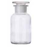 Большая склянка номинальной емкостью 2 500 мл для хранения различных веществ. Отлита из светлого прозрачного стекла, горловина широкая. Поставляется со стеклянной пришлифованной пробкой. Стекло склянки объемом 2500 мл специальное, химически и термически устойчивое. Изделие подходит для хранения ..