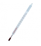 Промышленный термометр разработан для измерения температуры спирта. Особенности конструкции: длинная стеклянная колба с запаянной внутри градуированной пластиной, на которую нанесена шкала температур в градусах Цельсия, от -30 до +35. Пластина изготовлена из молочно-белого стекла. Стандарты: тер..