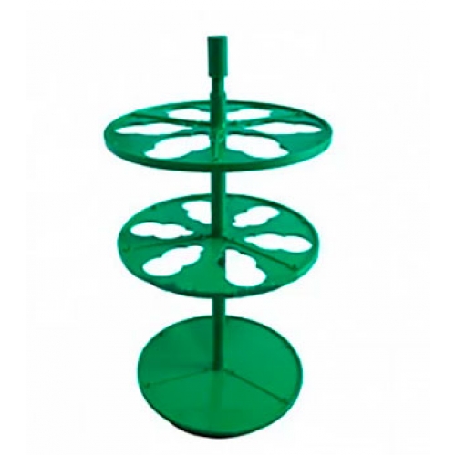 установка и хранение цилиндрических делительных воронок. Устойчивость штатива обеспечивает массивное стальное основание; конструкция предусматривает возможность изменения высоты расположения верхних дисков.